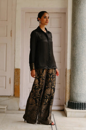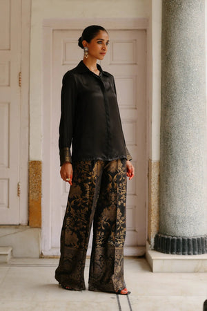 Embrace elegance and comfort with this perfect outfit that combines the smoothness of modal fabric with the rich texture of brocade. Make a statement at your next event in our Black Shirt with Brocade Pants!