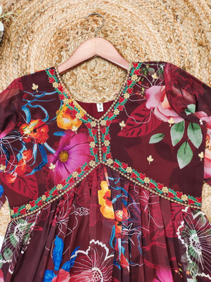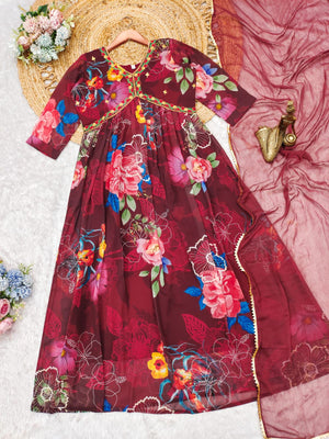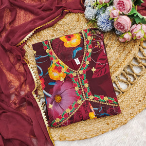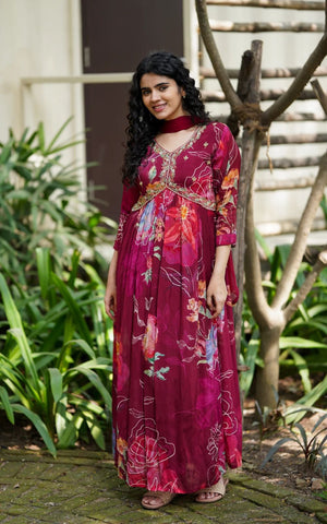 Georgette Febric with sequence embroidery work alia cut kurtis dupatta
