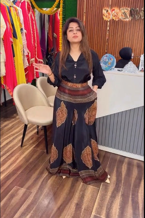 Work:- Shirt Havy Hand Work And Palazzo Printed