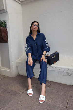 Ruby Denim Embroidered Coord Set