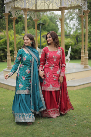 👉🏻 KURTI:- 👉🏻 FABRICS & Work :- Chinnon Printed With Sequins & thread Embroidered work 👉🏻 PLAZZO:-👇🏻 👉🏻 LINING(Inner) :- Cotton (full Inner) 👉🏻 DUPATTA :- 👇🏻