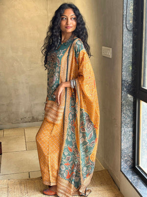 3-Piece Set: Includes Kurta, Palazzo & Matching Muslin Dupatta