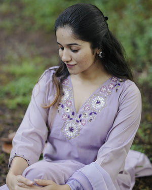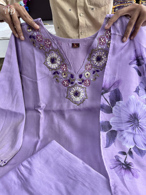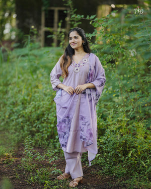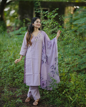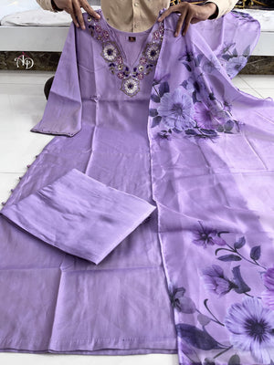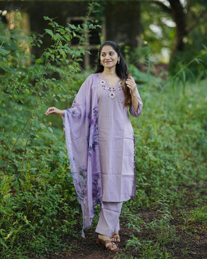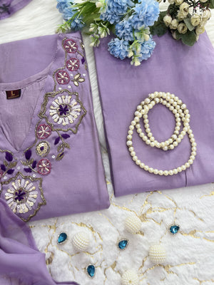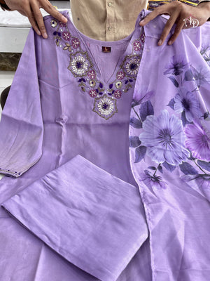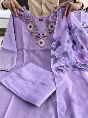 Featuring beautiful Heavy Suit Set which is beautifully decorated with intricate hand embroidery, Zari weaving . It is paired with matching pants and Lace DIGITAL Dupatta.
