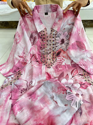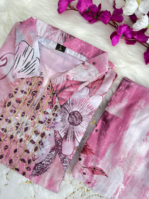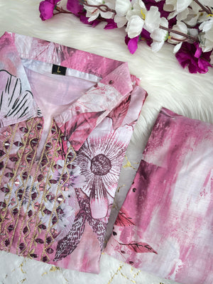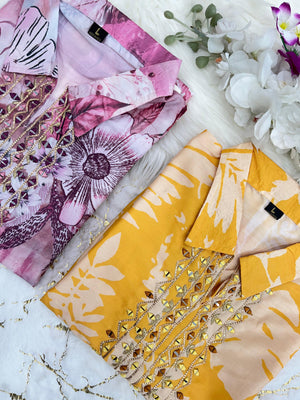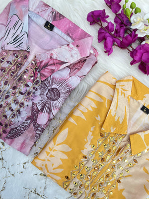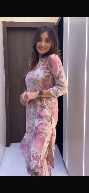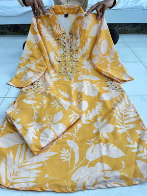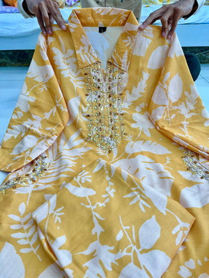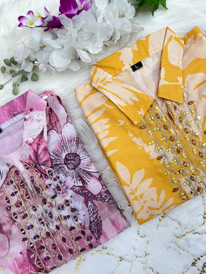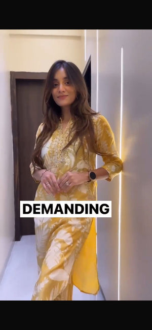 Featuring beautiful Heavy Suit Set which is beautifully decorated with intricate hand. Work, Zari weaving . It is paired with matching Afghani pants.