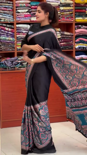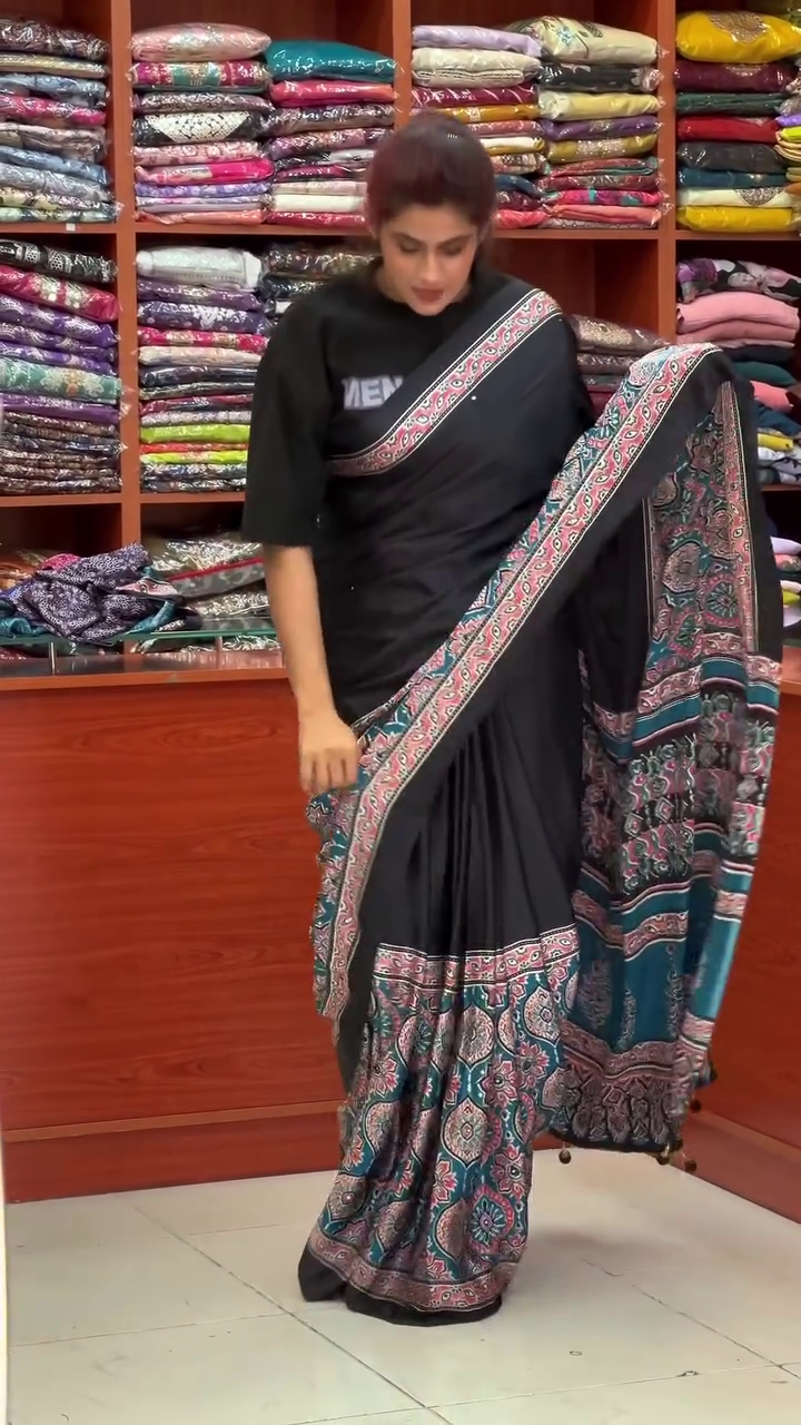 Saree fabric :- Creap silk with beautifull ajrakh print. special for eid collection.